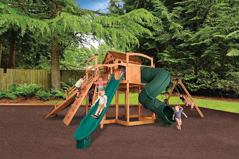 Welcome to the Treehouse Playset series, where adventure and imagination come to life. Designed with a square-based style, these playsets provide a sturdy and stable foundation for endless fun. The elevated playhouse and spacious deck area encourage imaginative play, allowing children to create their own adventures. This focus on creativity and storytelling is a hallmark of the Treehouse series, making it a favorite for kids who love to pretend and explore.